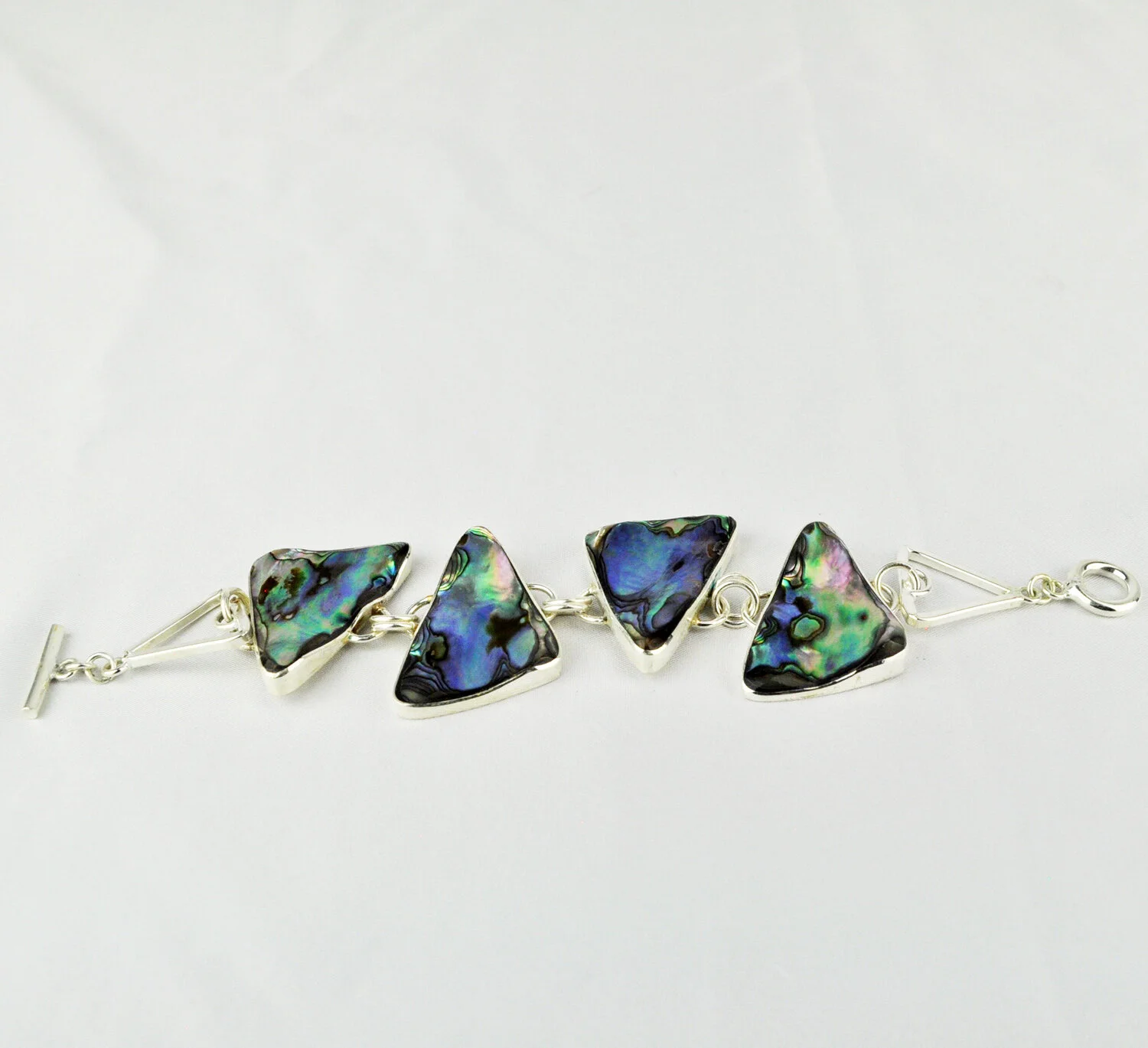 abalone shell set in silver link bracelet.. toggle closure..shell inlay measures 1.5” approx.